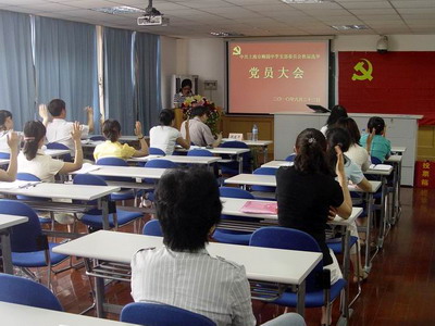 大会在国歌声中拉开帷幕,梅园中学党支部书记朱静英同志做了《中共上海市梅园中学党支部2007-2010年工作报告》(草案),报告总结了党支部在区教育党工委的领导下,认真贯彻徐汇教育党建“一二三”工作格局,紧密结合学习实践科学发展观等活动,以多样的形式、丰富的内容、认真的组织,落实了学校各个层面的学习;以职业道德、敬业精神深化了师德师风建设;整合资源、调动积极性,同创共建文明单位和谐校园;以党内“三先”落实了党员的民主权利,促进了党内民主;以“三高”引领党员发展,发挥党员的先锋模范作用;以制度化的方法和有效的机制,落实干部的培训和管理;以服务世博、奉献世博为原则,争做世博先锋。支部努力在“围绕中心、服务大局、拓宽领域、强化功能”上下功夫,在“推动发展、服务群众、凝聚人心、促进和谐”上做文章,在思想、组织、制度、作风和反腐倡廉建设上化力气,在“围绕学校中心工作抓党建,抓好党建促学校发展”的过程中,积极地发挥了党员的先锋模范作用和支部的战斗堡垒作用。报告也寻找到了支部在党建工作中存在的不足,并明确提出了今后的努力方向和工作目标。