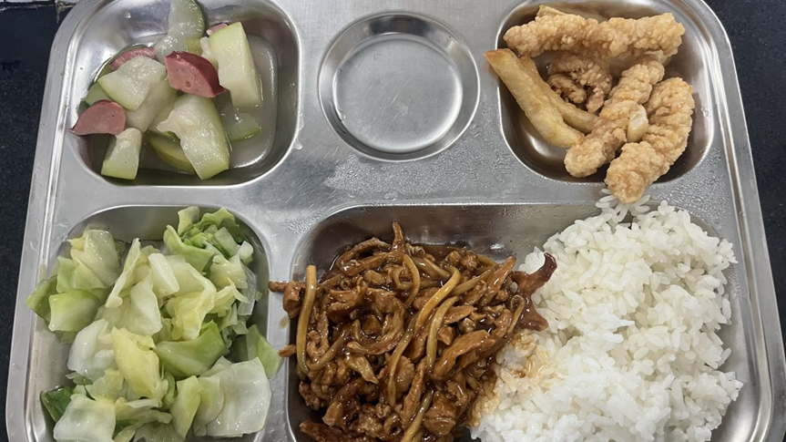 双色猪肉条(不低于60克),甜椒炒肉(不低于60克)