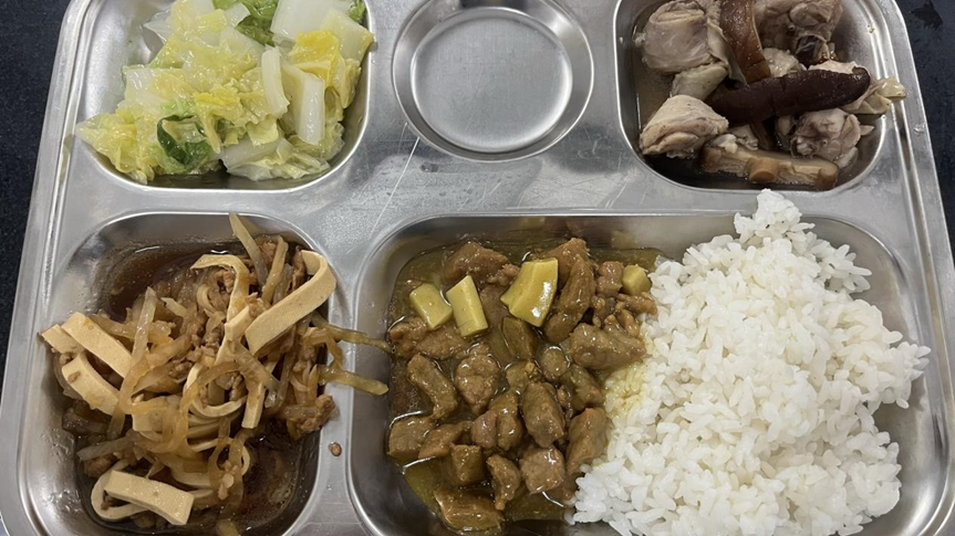 咖喱牛肉粒(不低于60克),香菇蒸滑鸡(不低于60克)