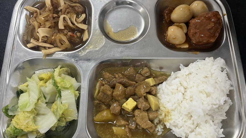咖喱牛肉粒(不低于60克),鹌鹑蛋烧肉丸(不低于60克)