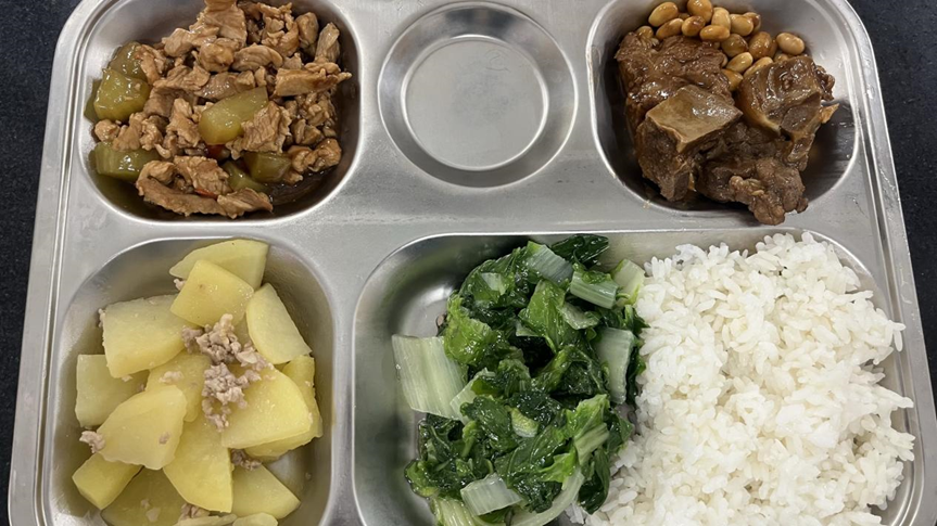 土豆片烧肉沫(猪肉不低于15克),杭白菜(不低于80克)
