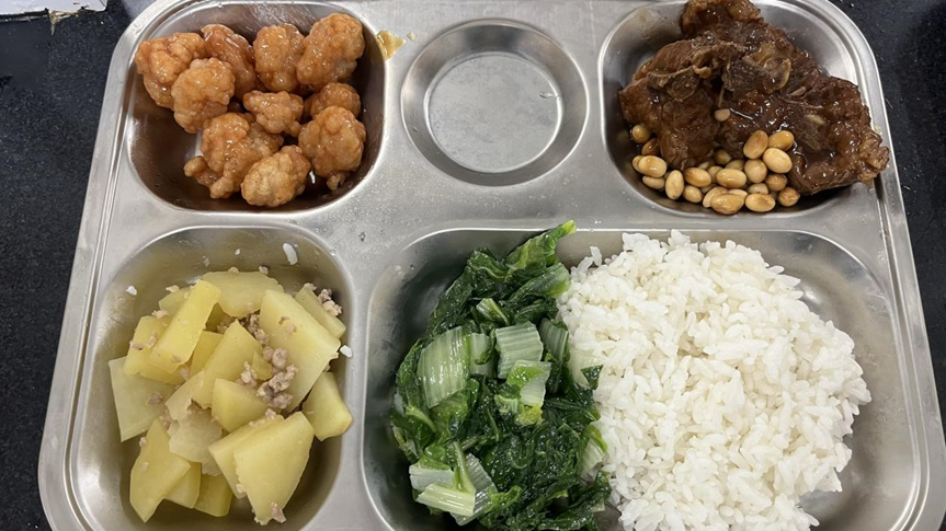 黄豆烧排骨(不低于60克),茄汁咕咾肉(不低于60克)