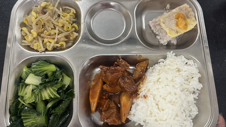 山药红烧肉(不低于60克),肉饼蒸蛋(不低于60克)