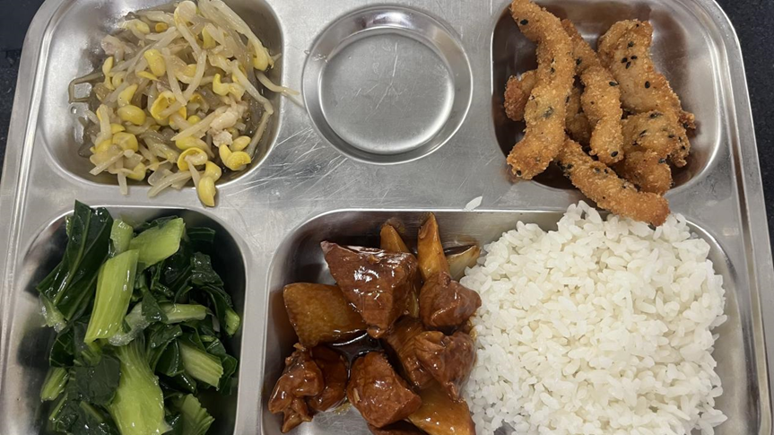 山药红烧肉(不低于60克),芝香排条(不低于60克)